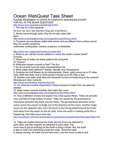 Read Ocean Webquest Task Sheet Answer Key Kindle Editon